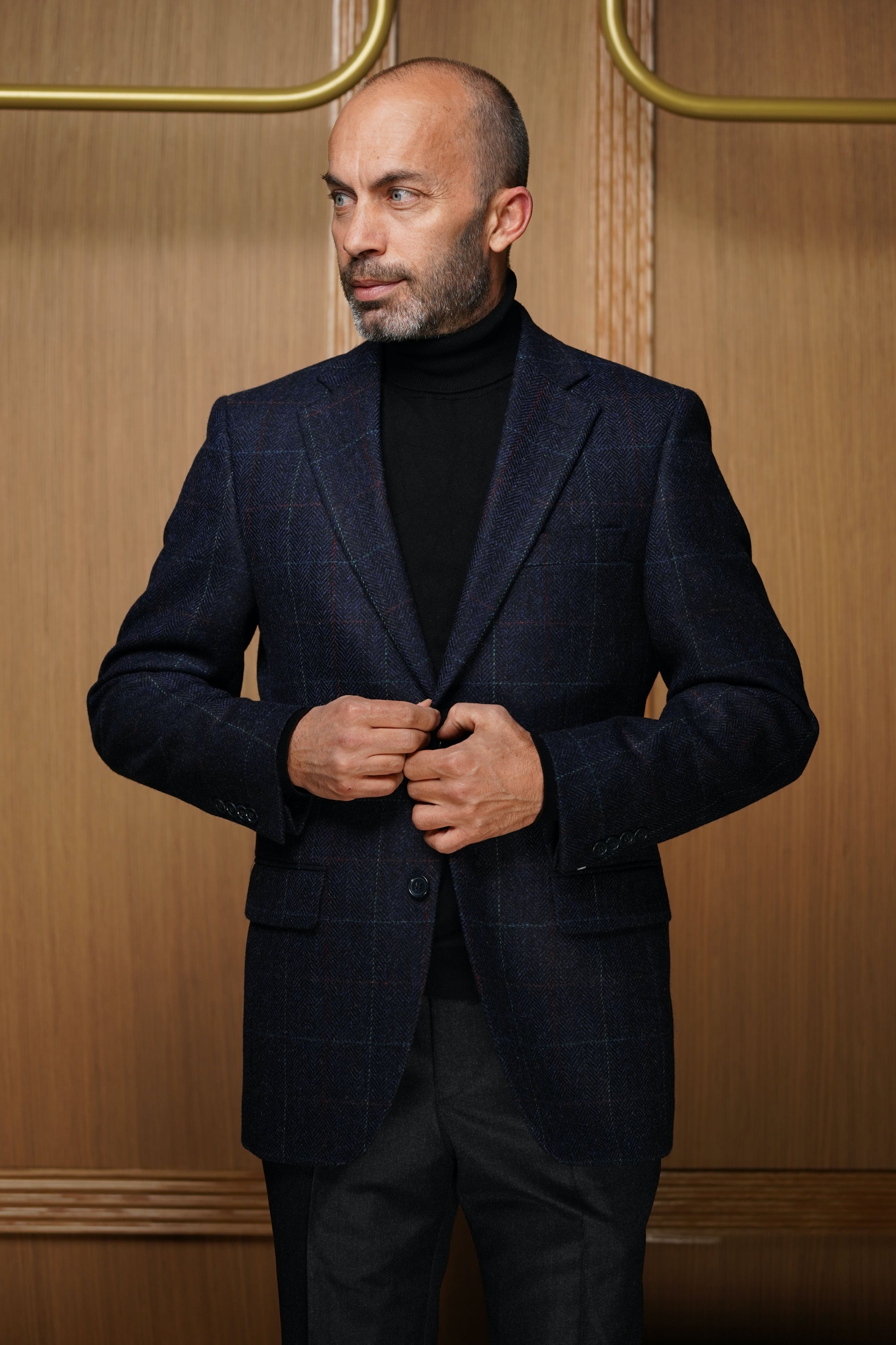 Confectionnée en Europe avec une laine de qualité supérieure, cette veste d'hiver présente un motif à carreaux fenêtre bleu et rouge distinctif. Sa composition pure laine garantit une isolation thermique optimale tout en conservant une élégance intemporelle. Un vêtement d'exception alliant technicité traditionnelle et raffinement vestimentaire.